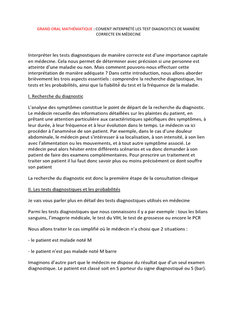 GRAND ORAL MATHÉMATIQUE : COMENT INTERPRÉTÉ LES TEST DIAGNOSTICS DE MANIÈRE