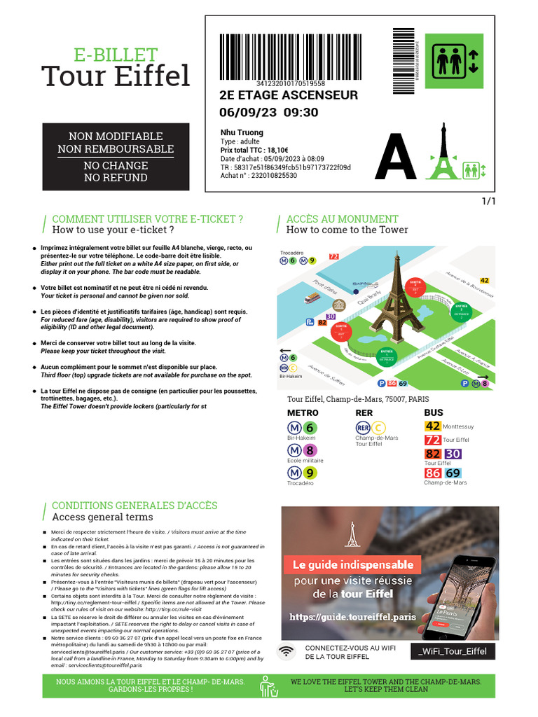 serviceclients@toureiffel.paris / Our customer service: +33 (0)9 69 36 27 07 (price of a