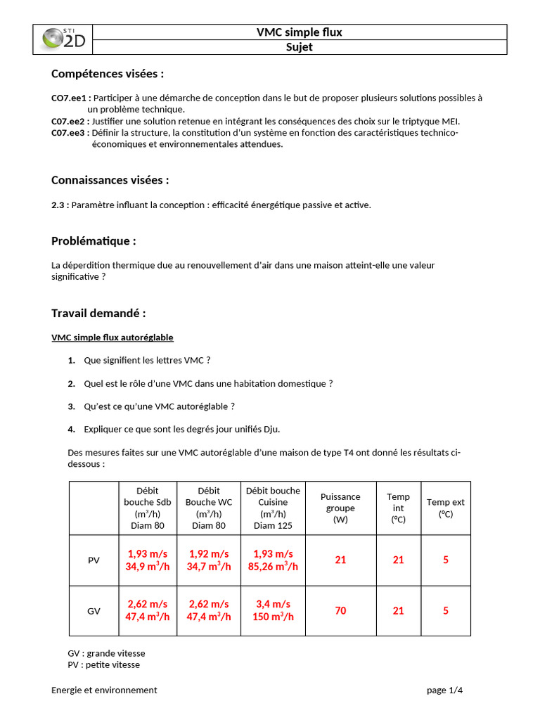 Pour une maison de type T4 de 70m2 et selon les 3 cas ci-dessus et les 2 cas de VMC précédents (mettre vos
