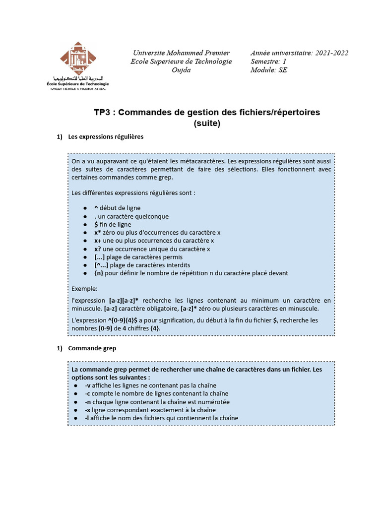 TP3 : Commandes de gestion des fichiers/répertoires