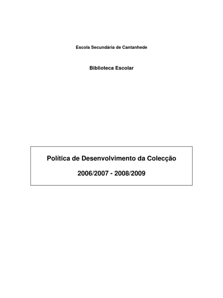 constituem a colecção. A equipa da Biblioteca Escolar terá ainda em conta que
