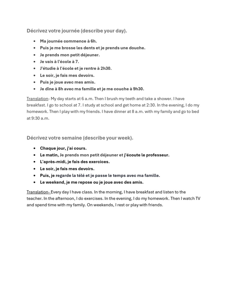 • Le matin, Je prends mon petit déjeuner et j'écoute le professeur.