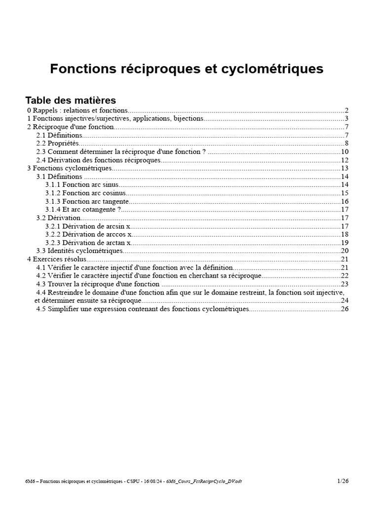 6M6 – Fonctions réciproques et cyclométriques - CSPU - 16/08/24 - 6M6_Cours_FctReciprCyclo_DV.odt 6/26