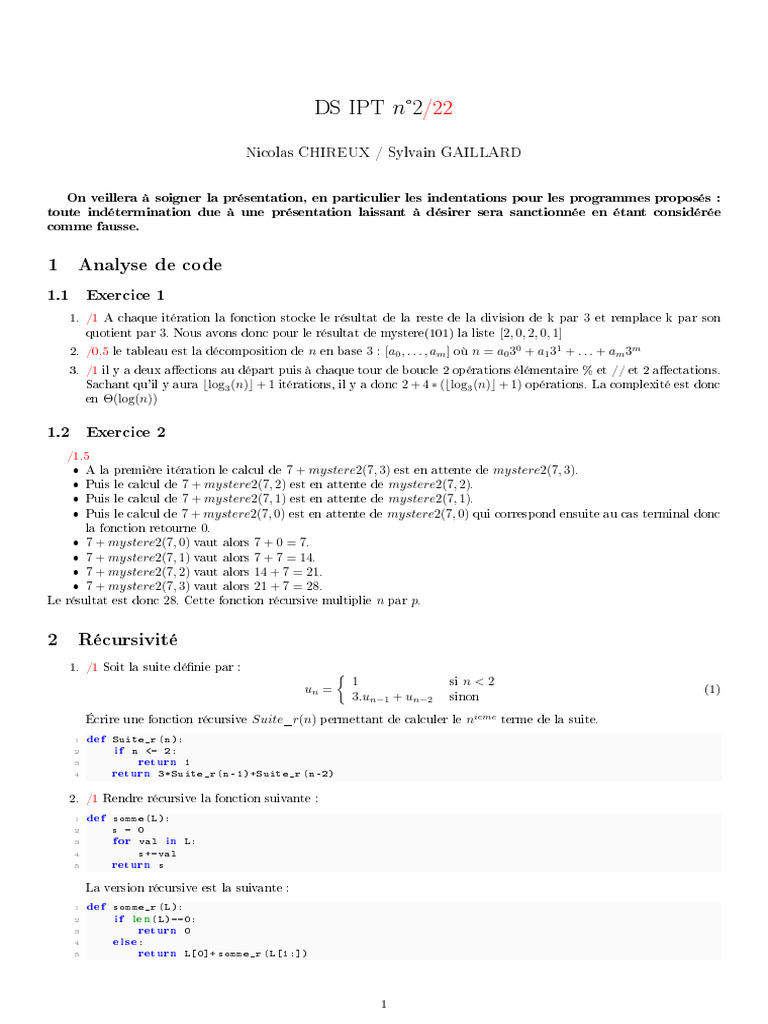 quotient par 3. Nous avons donc pour le résultat de mystere(101) la liste [2, 0, 2, 0, 1]