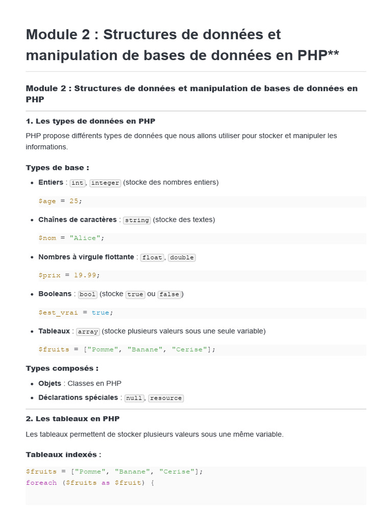 Ce module vous a présenté les structures de données en PHP et la gestion des bases de données. Si