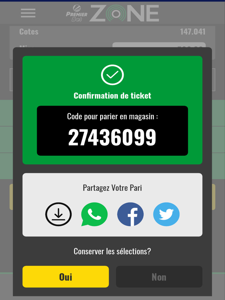 Gains Code pour parier en magasin : 73520.500