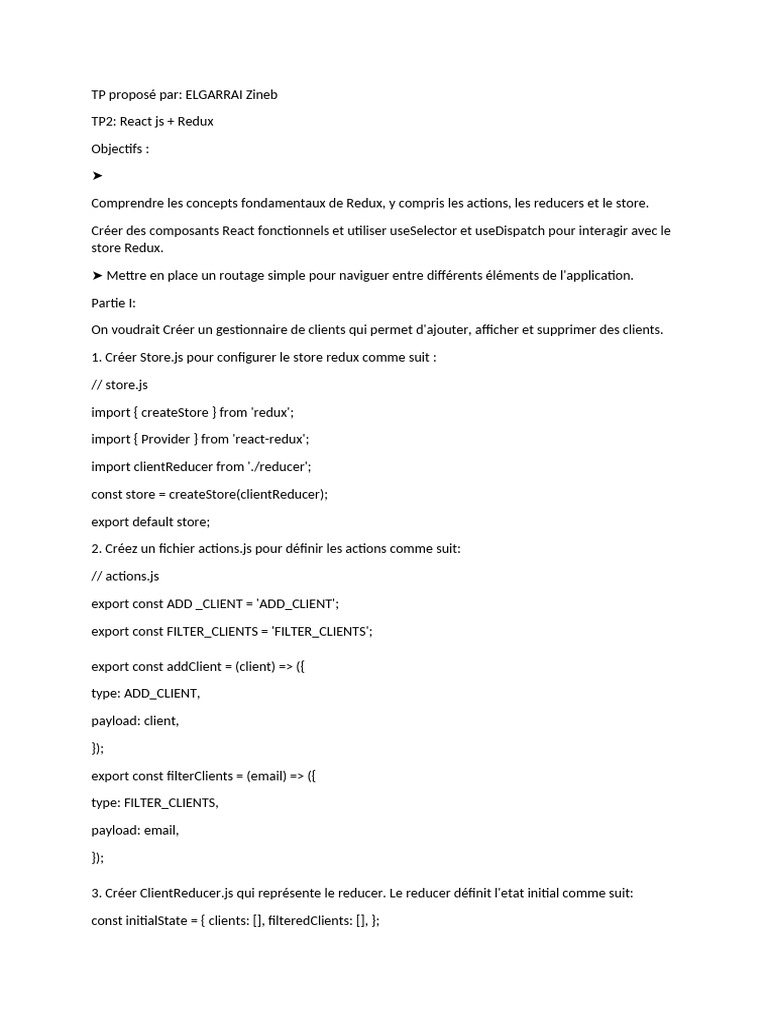 3. Créer ClientReducer.js qui représente le reducer. Le reducer définit l'etat initial comme suit: