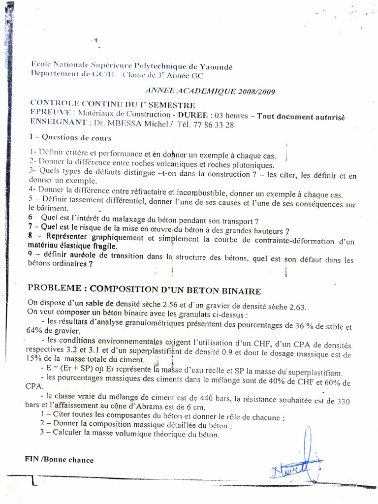 EPREUVE : Matériaux de Construction DUREE 03 heures
