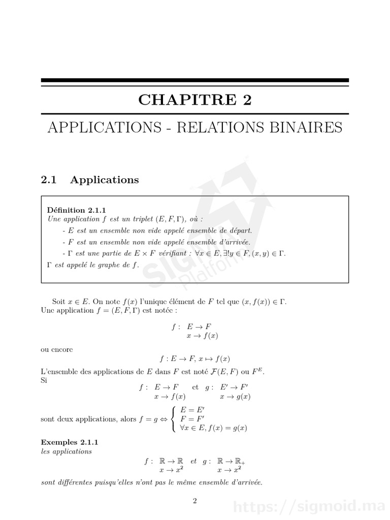 CHAPITRE 2. APPLICATIONS - RELATIONS BINAIRES