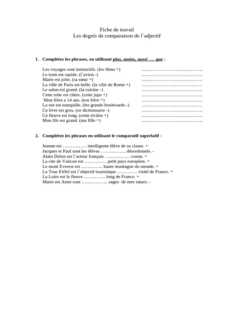 1. Complétez les phrases, en utilisant plus, moins, aussi …. que :