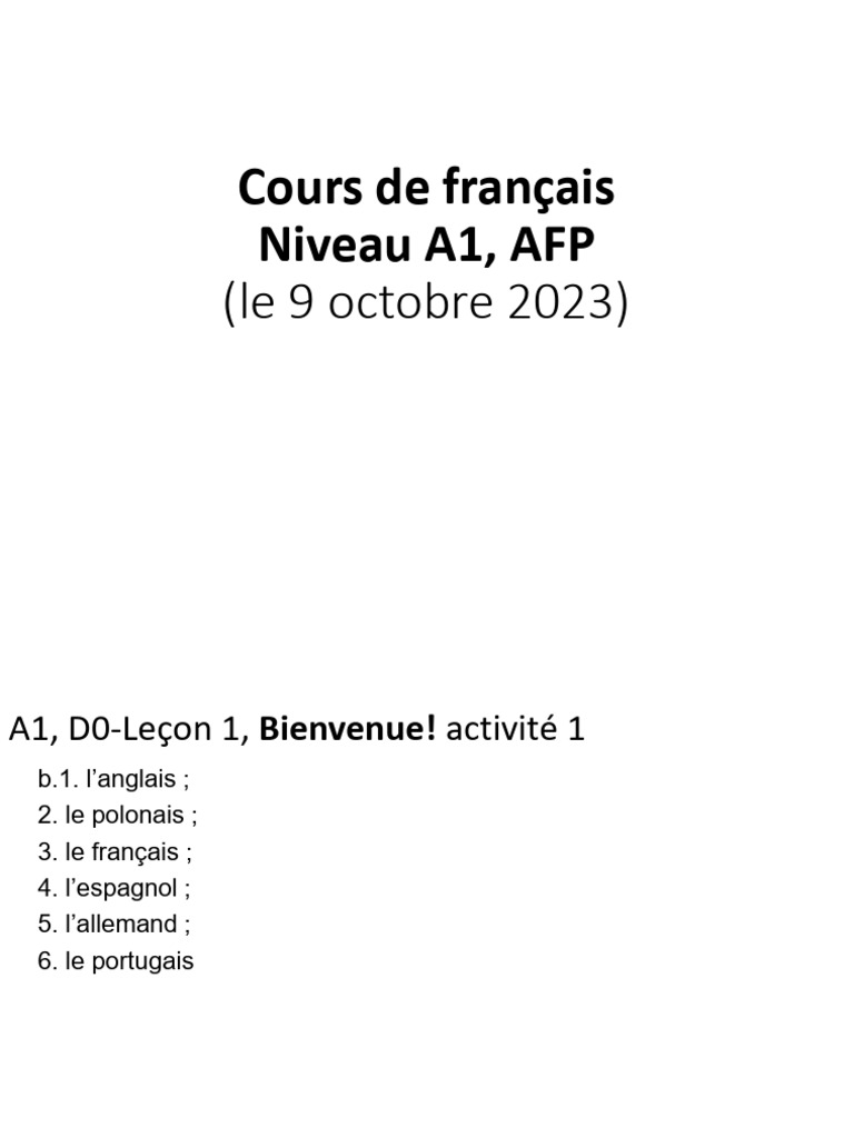 A1, D0-Leçon 1, Bienvenue! activité 1