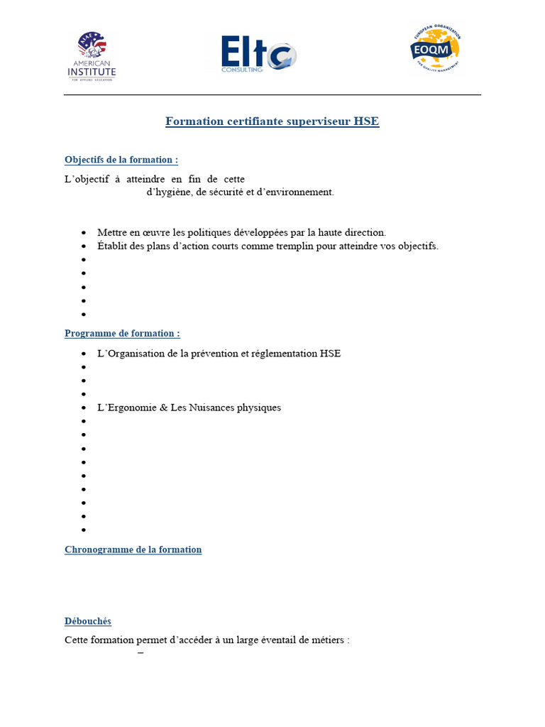 L’objectif à atteindre en fin de cette formation, Superviseur HSE, est de former des