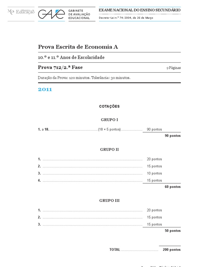 Prova Escrita de Economia A