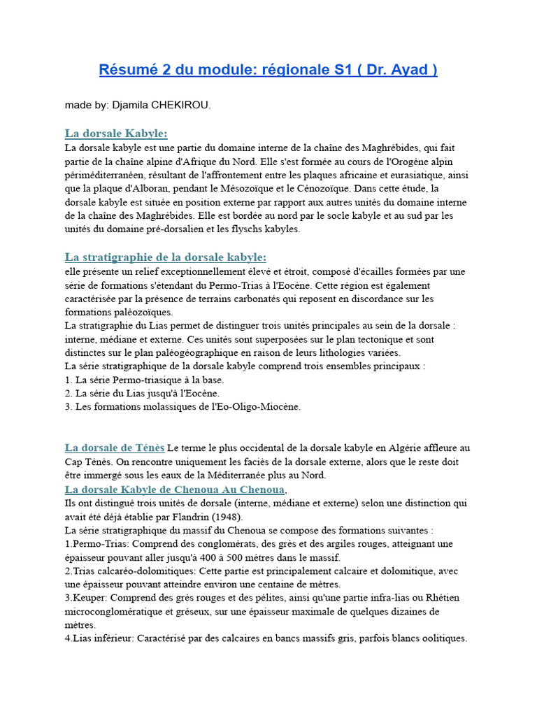 Résumé 2 du module: régionale S1 ( Dr.