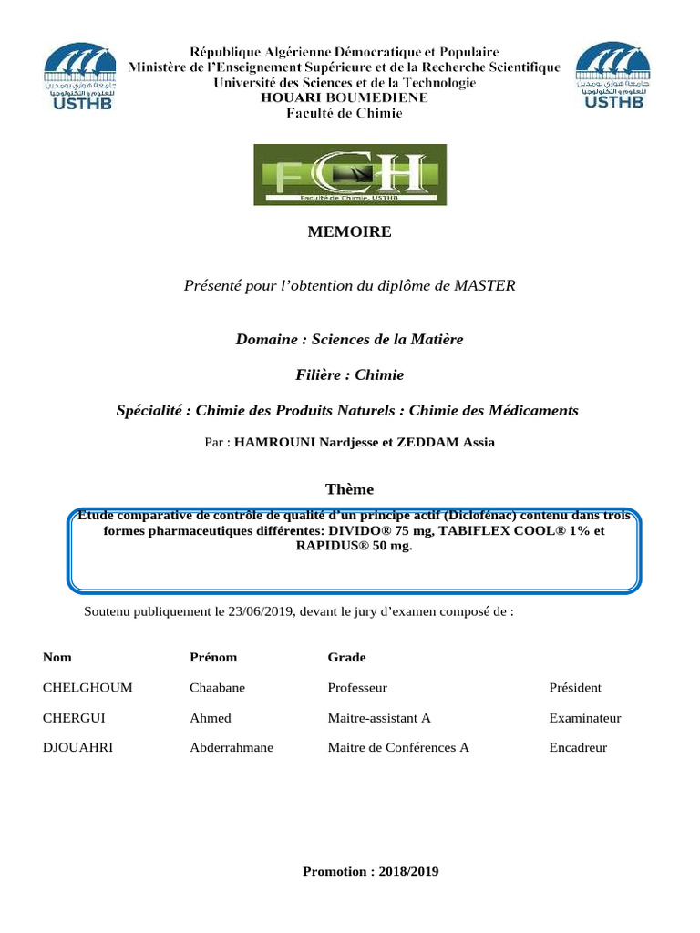 Etude comparative de contrôle de qualité d’un principe actif (Diclofénac) contenu dans trois
