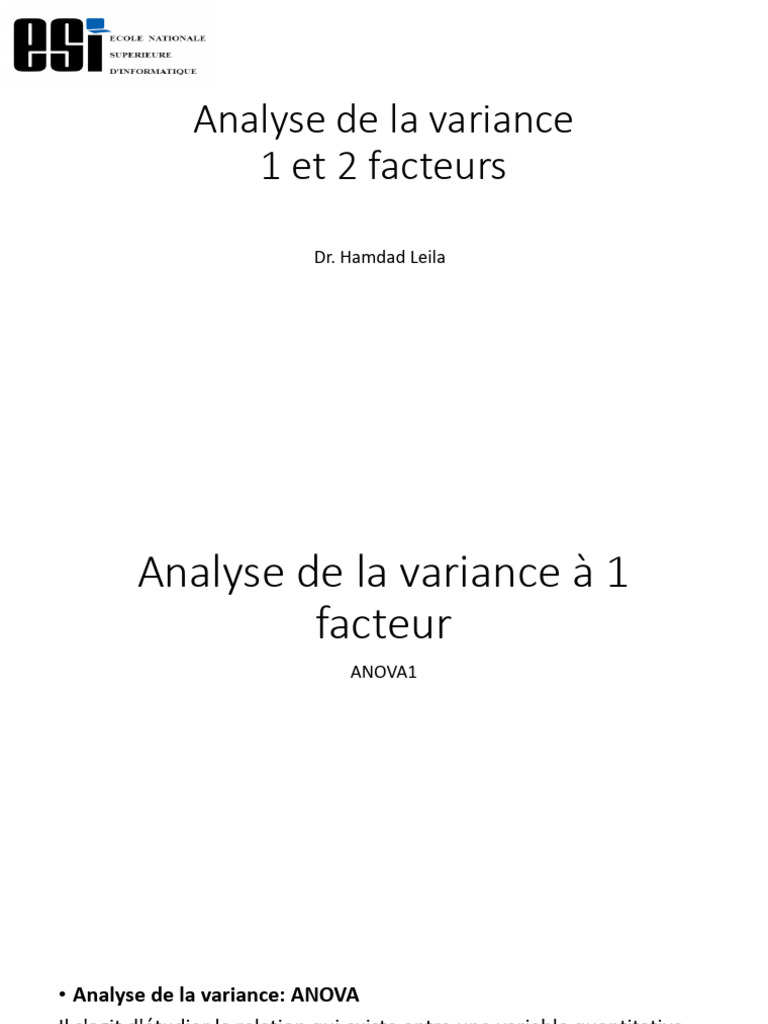 • Pour cela, on dresse le tableau de l'ANOVA1 suivant: