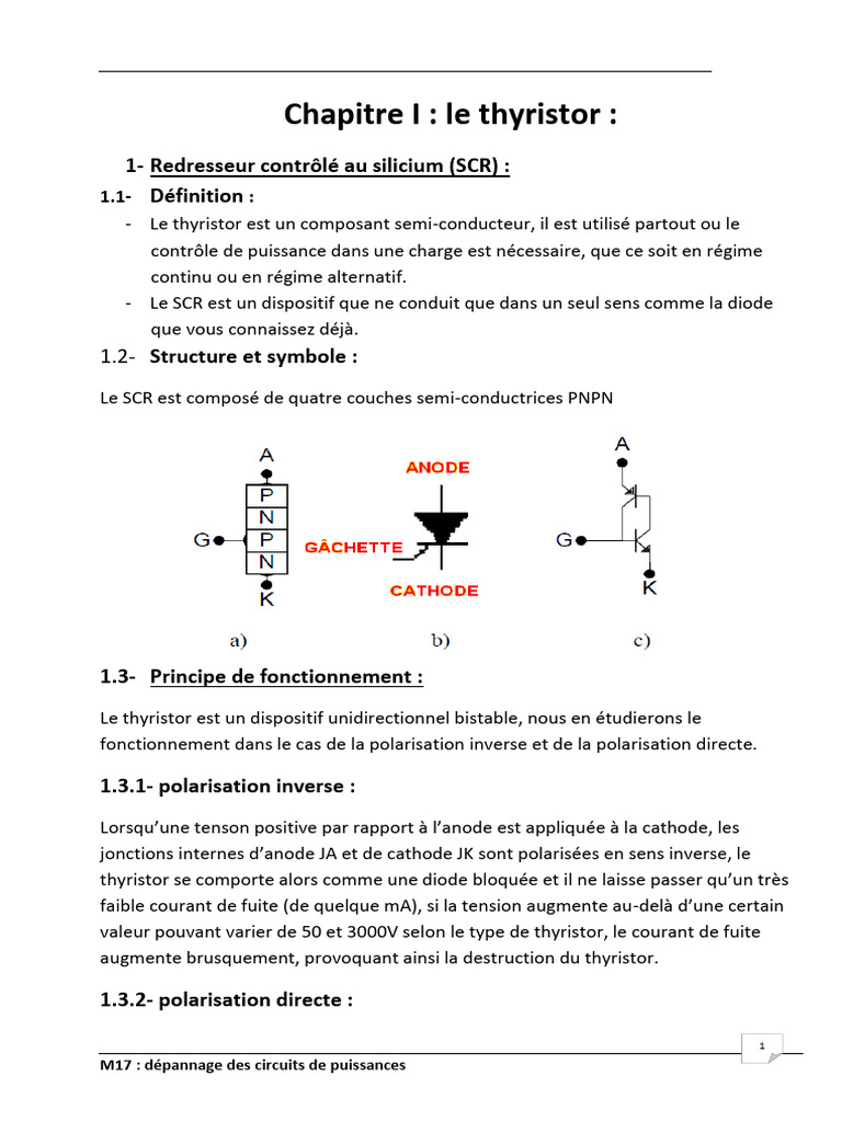 Chapitre I : le thyristor :