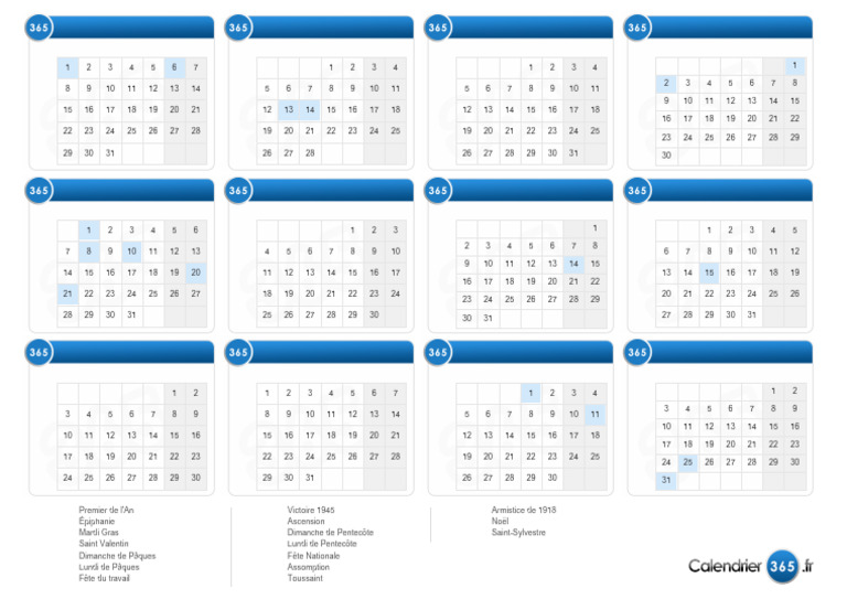 1 janvier Premier de l'An 8 mai Victoire 1945 11 novembre Armistice de 1918 Calendrier & Jours fériés