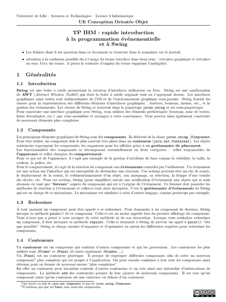 de AWT (Abstract Window Toolkit) qui était la boı̂te à outils originale tout en s’appuyant dessus. Les interfaces