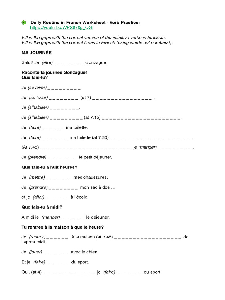 Daily Routine in French Worksheet - Verb Practice: