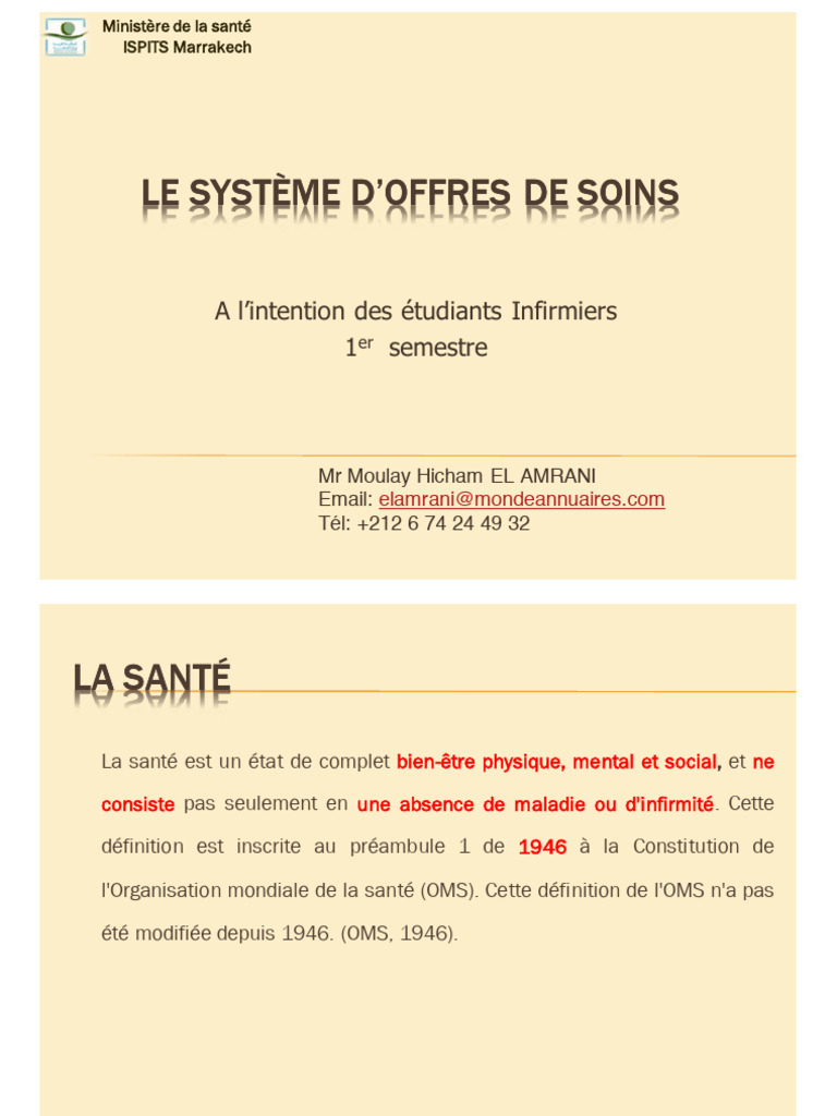 aspects (curatifs, préventifs, éducatifs et sociaux), ainsi que les services