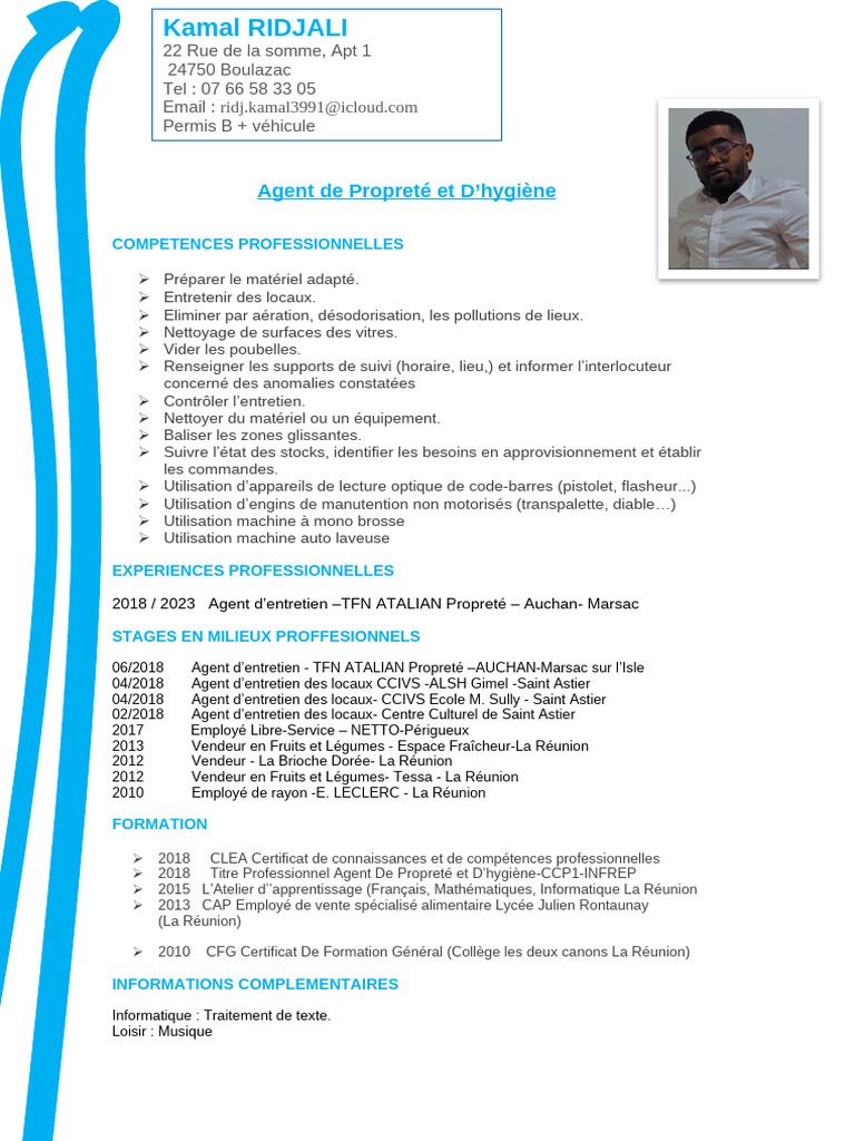 06/2018 Agent d’entretien - TFN ATALIAN Propreté –AUCHAN-Marsac sur l’Isle