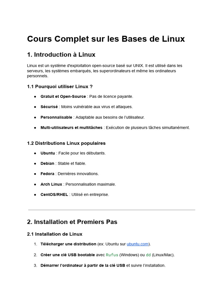 Ce guide couvre les bases essentielles de Linux. Pour aller plus loin, pratiquez en utilisant le