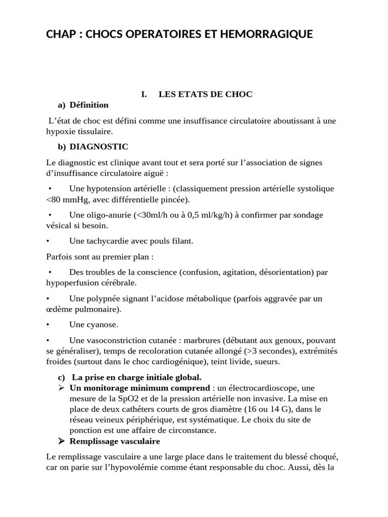 CHAP : CHOCS OPERATOIRES ET HEMORRAGIQUE