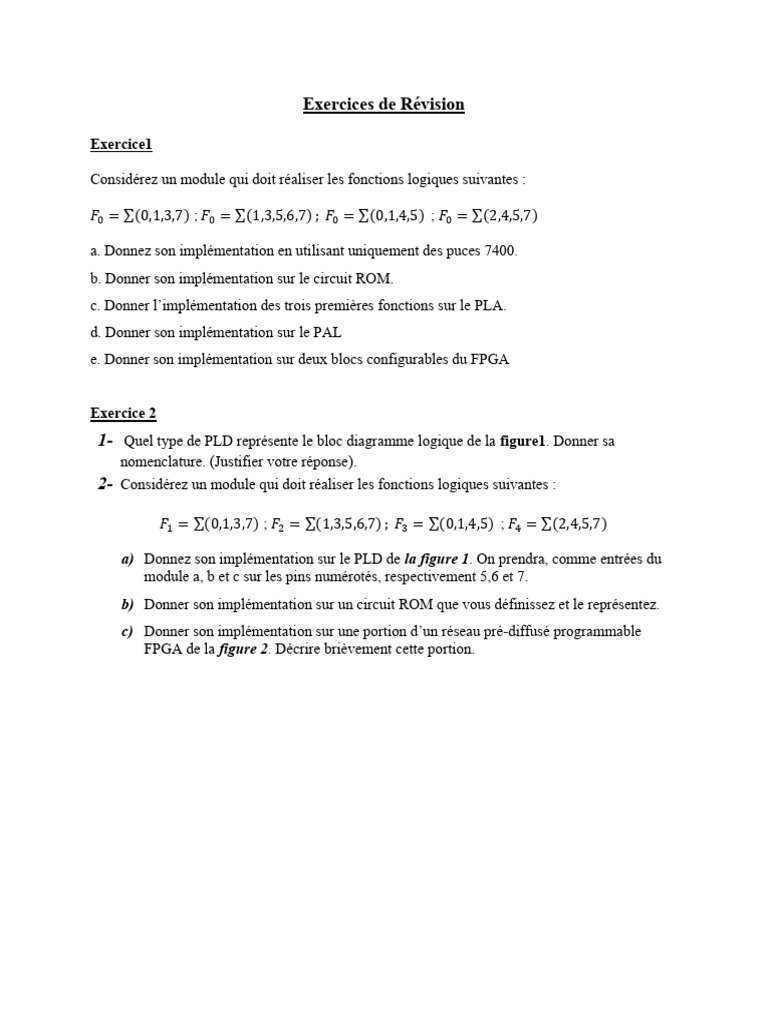 1- Quel type de PLD représente le bloc diagramme logique de la figure1. Donner sa