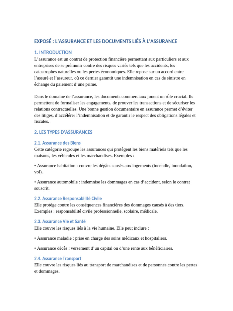 EXPOSÉ : L’ASSURANCE ET LES DOCUMENTS LIÉS À L’ASSURANCE