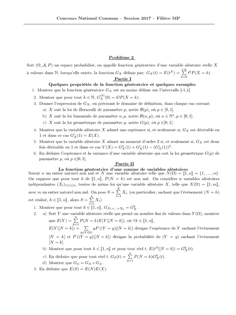 1. Montrer que la fonction génératrice GX est au moins définie sur l’intervalle [-1,1].