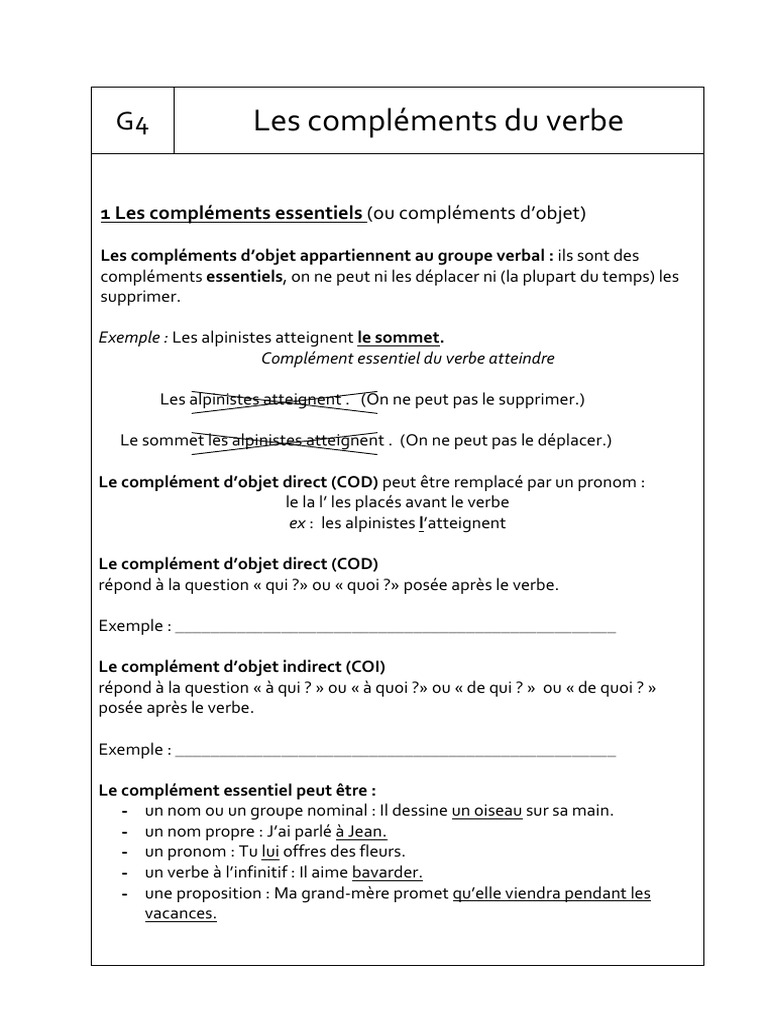 compléments essentiels, on ne peut ni les déplacer ni (la plupart du temps) les