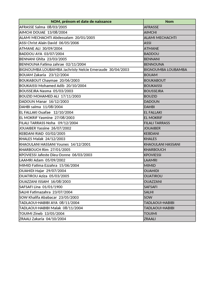 ALAMI MECHACHTI Abdessalam en C2, afficher le nom et prénom