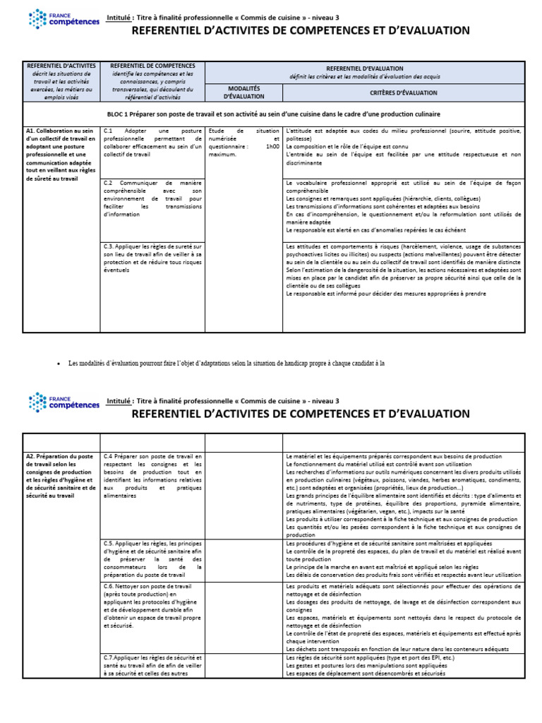 Intitulé : Titre à finalité professionnelle « Commis de cuisine » - niveau 3