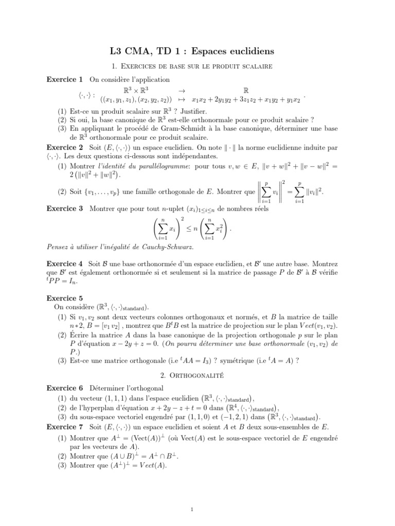 L3 CMA, TD 1 : Espaces euclidiens