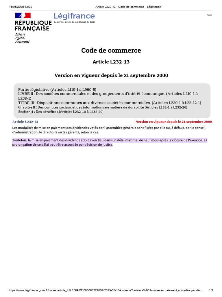 16/05/2025 12:32 Article L232-13 - Code de commerce - Légifrance