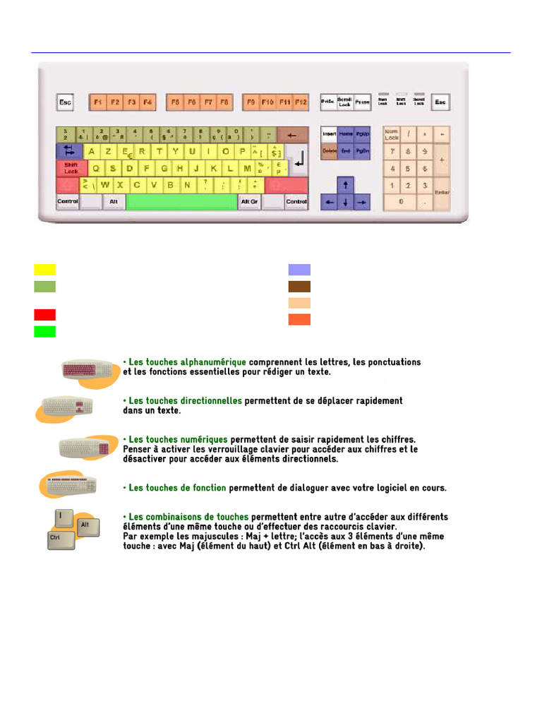 Sur ce dessin, les touches sont regroupées par couleur, et chaque couleur représente une