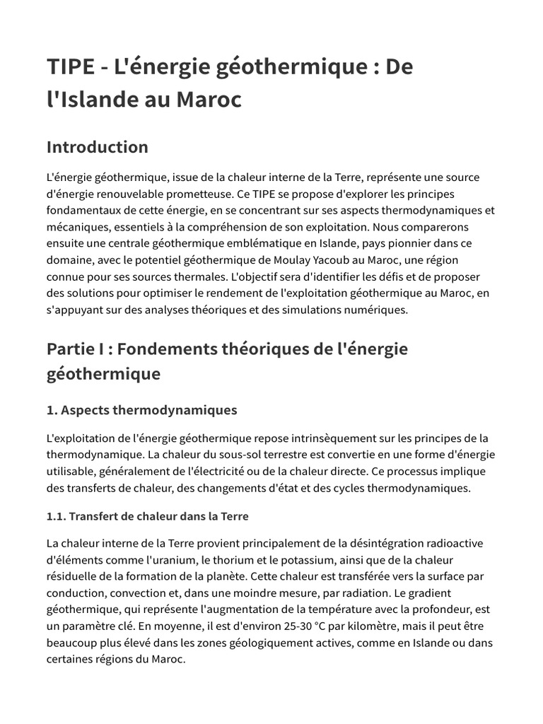 Ce TIPE a permis d'explorer en profondeur le domaine de l'énergie géothermique, en
