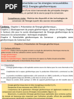 ressources géothermiques et les défis spécifiques à leur valorisation.