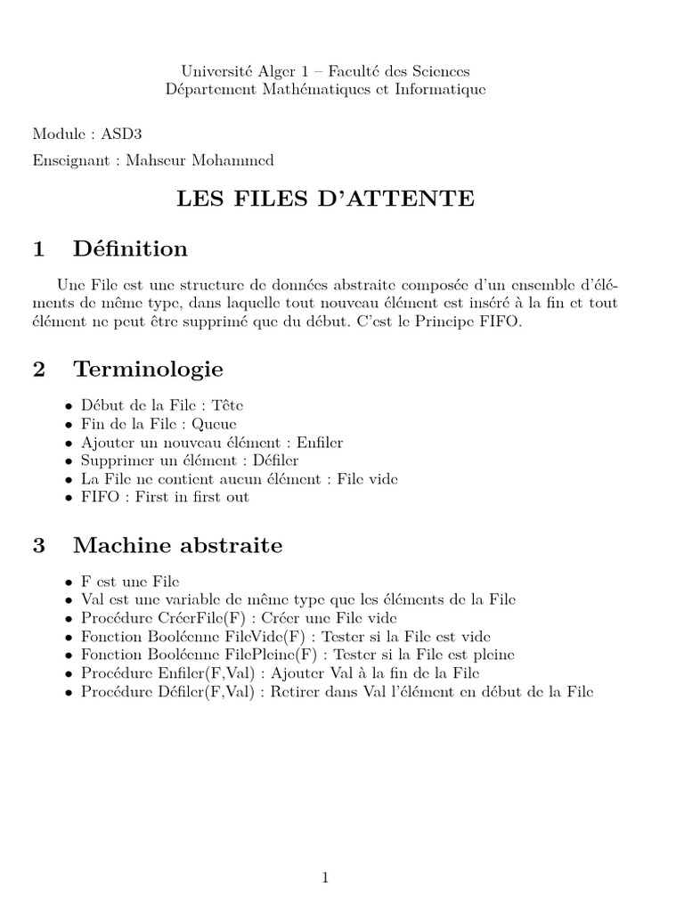 Une File est une structure de données abstraite composée d’un ensemble d’élé-