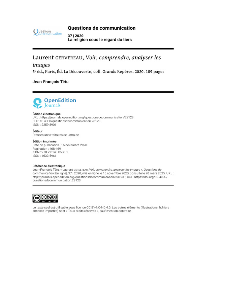 Jean-François Tétu, « Laurent GERVEREAU, Voir, comprendre, analyser les images », Questions de