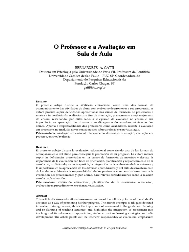 Palavras-chave: avaliao educacional, planejamento do ensino, orientao, avaliao em