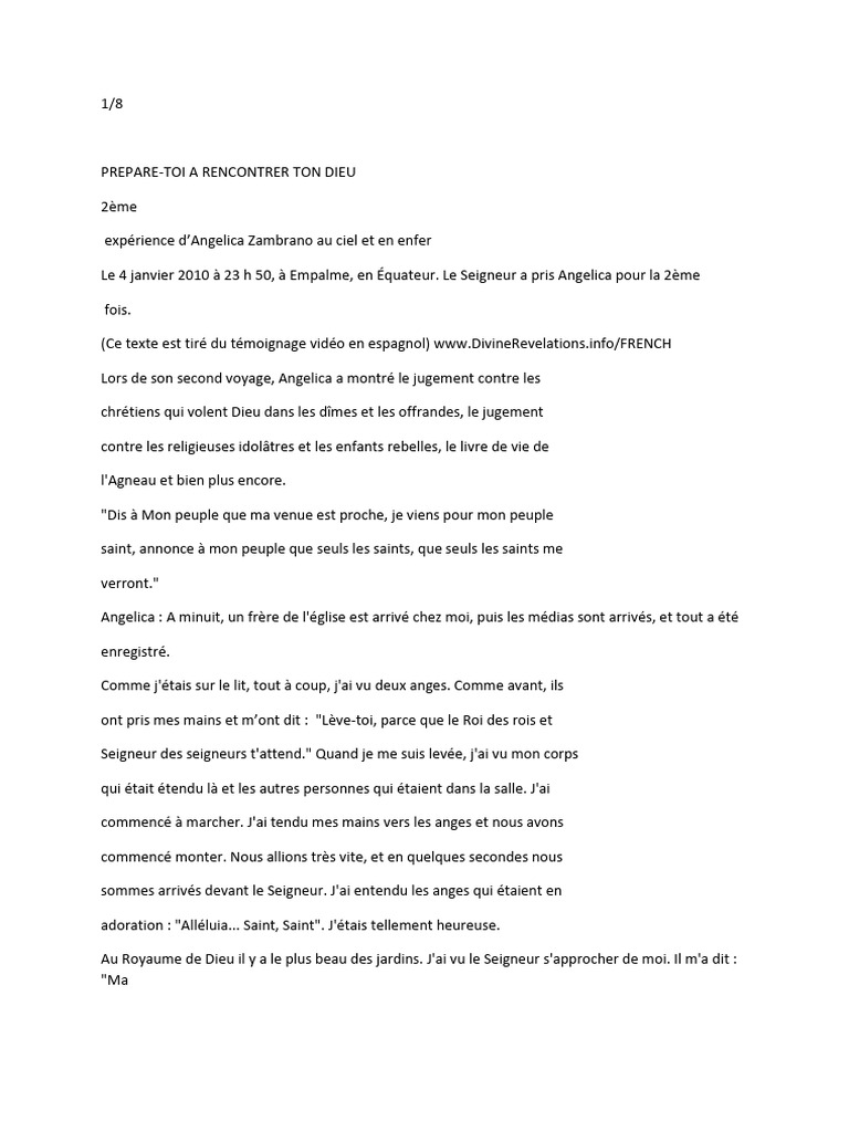 (Ce texte est tiré du témoignage vidéo en espagnol) www.DivineRevelations.info/FRENCH