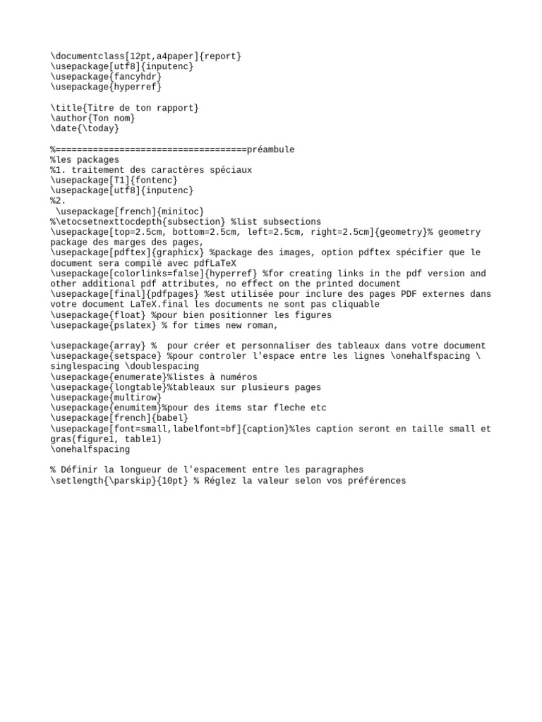 \usepackage{setspace} %pour controler l'espace entre les lignes \onehalfspacing \