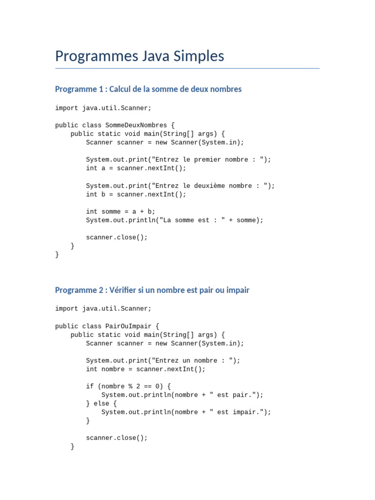 Programmes Java Simples