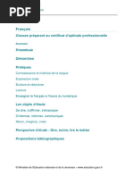 du développement des compétences orales et écrites. Voir le tableau de correspondance en fin de ce