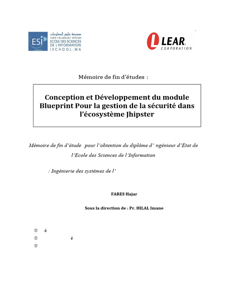 le développement des applications basées sur Jhispter, en garantissant une sécurité renfor-