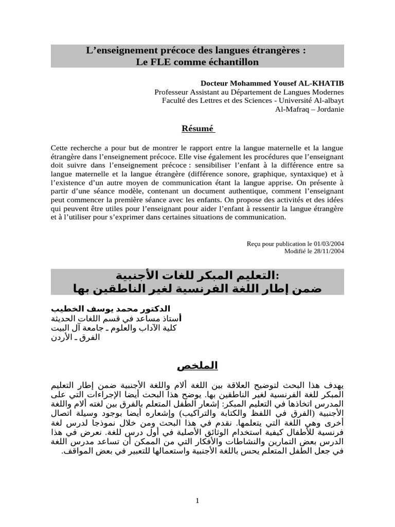 يوضح هذا البحث أيضا اإلجراءات التي على.المبكر للغة الفرنسية لغير الناطقين بها