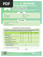 ENFANT : Nom .......................................................... Prénom .......................................................... Né(e) le ......................................... ☐Fille ☐Garçon