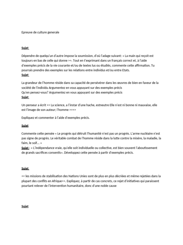 Sujet : « L'indépendance vraie, qu'elle soit individuelle ou collective, est bien souvent l'aboutissement
